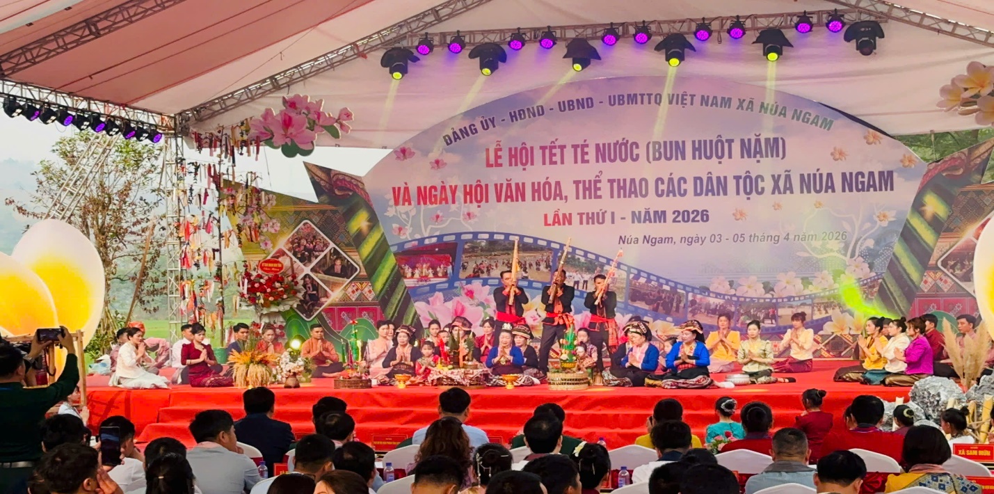 Các thầy cô giáo và các em học sinh lớp 10A10, Trường PTDTNT THPT tỉnh Điện Biên tại Lễ hội té nước (Bun huột nặm) và Ngày hội văn hóa, thể thao các dân tộc xã Núa Ngam lần thứ I năm 2026