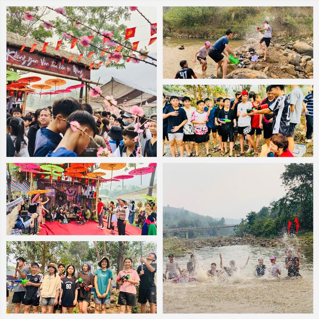 Các cô giáo và em học sinh lớp 10A10, Trường PTDTNT THPT Tỉnh tham gia trải nghiệm Lễ hội té nước (Bun huột nặm) và Ngày hội văn hóa, thể thao các dân tộc xã Núa Ngam lần thứ I năm 2026