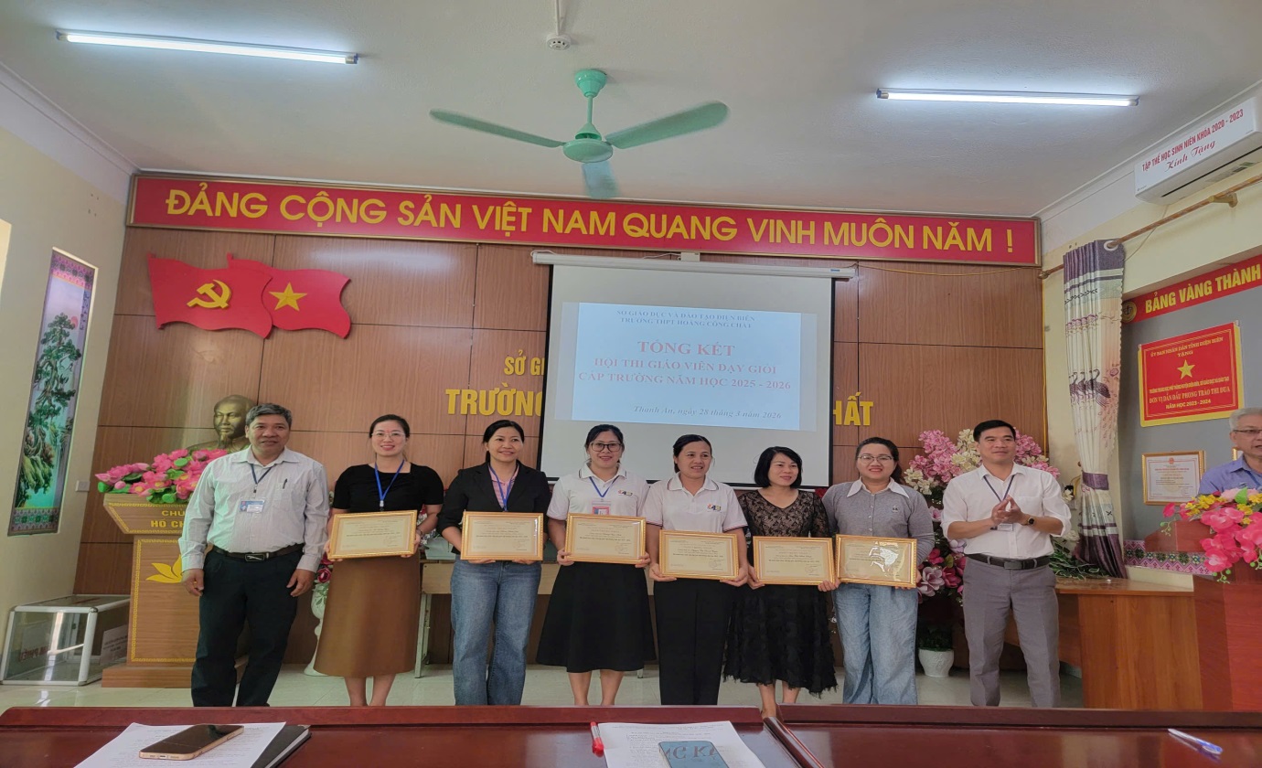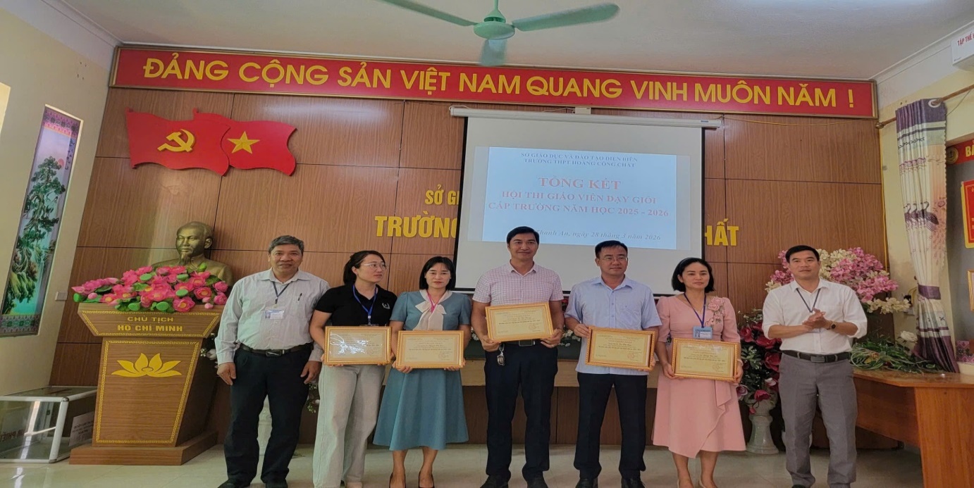 Từ ngày 02/3/2026 đến ngày 28/03/2026 trường THPT Hoàng Công Chất đã tổ chức thành công Hội thi GVDG cấp trường năm học 2025 - 2026. Hội thi được tổ chức nhằm mục đích tôn vinh các nhà giáo đạt Danh hiệu giáo viên dạy giỏi và nhân rộng những điển hình tiên tiến, góp phần thu hút sự quan tâm của các lực lượng xã hội tham gia giáo dục học sinh, tạo động lực phát triển sự nghiệp giáo dục của nhà trường; tạo động lực cho giáo viên phấn đấu, hoàn thiện bản thân đáp ứng yêu cầu đổi mới, nâng cao chất lượng giáo dục, phát triển nghề nghiệp, hướng tới nâng cao hiệu quả sinh hoạt chuyên môn và đẩy mạnh các phong trào thi đua trong nhà trường.
